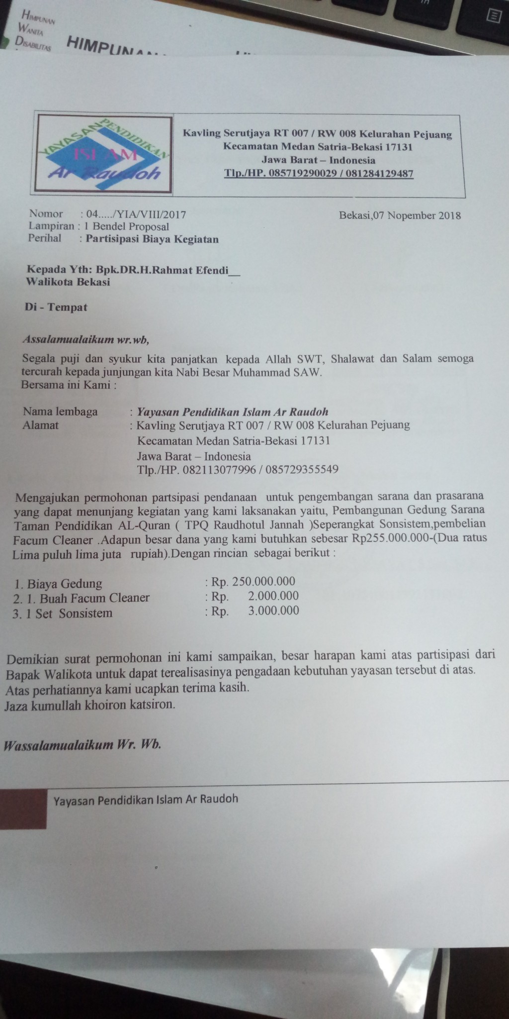 Proposal telah diterima dan sedang dalam proses disposisi pimpinan.